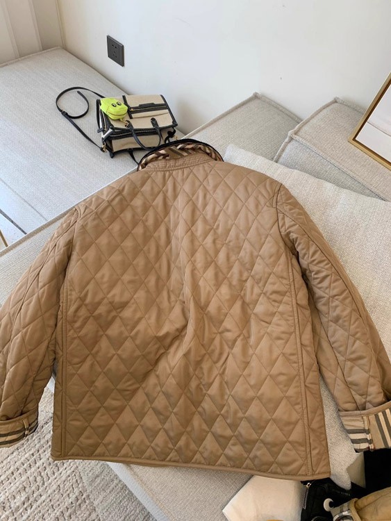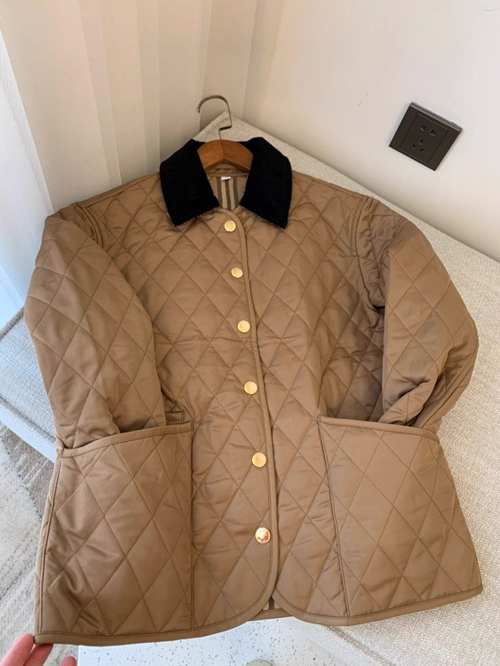 Burberry classic corduroy collar diamond quilted down jacket in golden cotton-5300