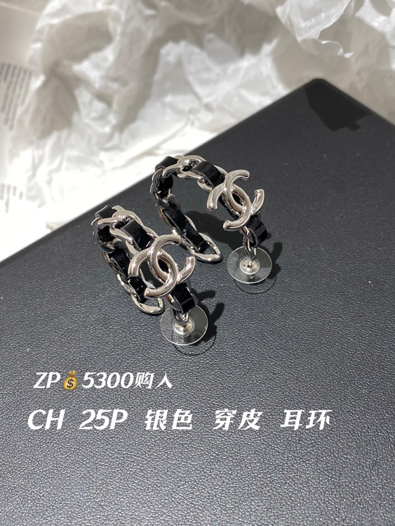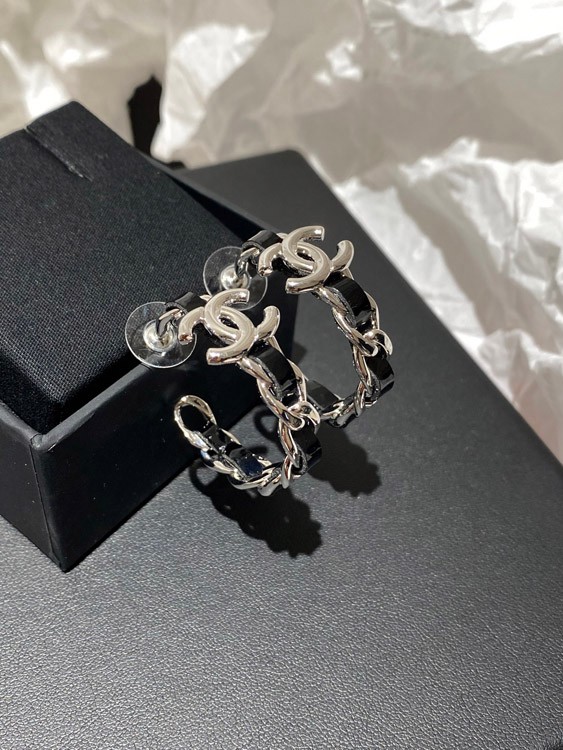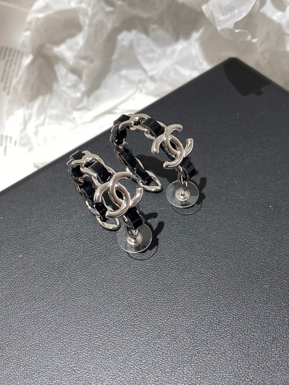 Chanel silver leather hoop earrings-3596