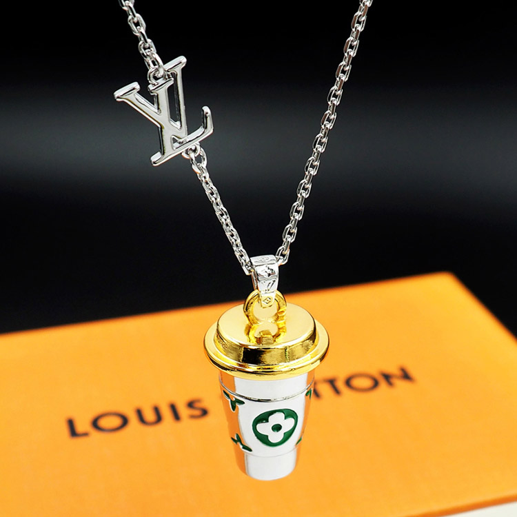 Home > Louis Vuitton LV Letter Floral Enamel Inscription Miniature Coffee Cup Necklace-3915