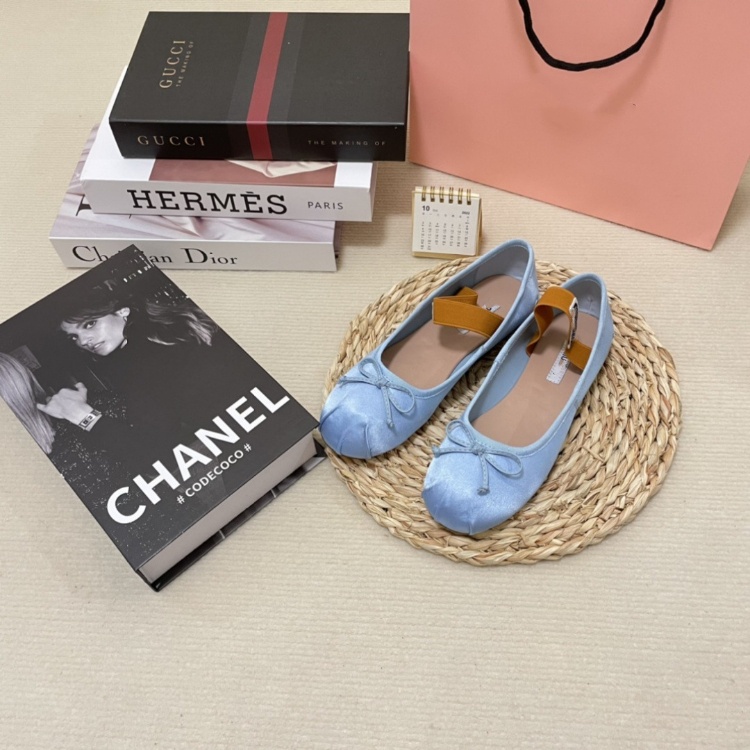 Miu Miu new silk flat ballet shoes with bow detail-5717