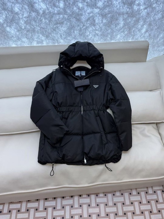 Home > Prada new zip-up hooded down jacket with elastic waist windproof and warm-5353