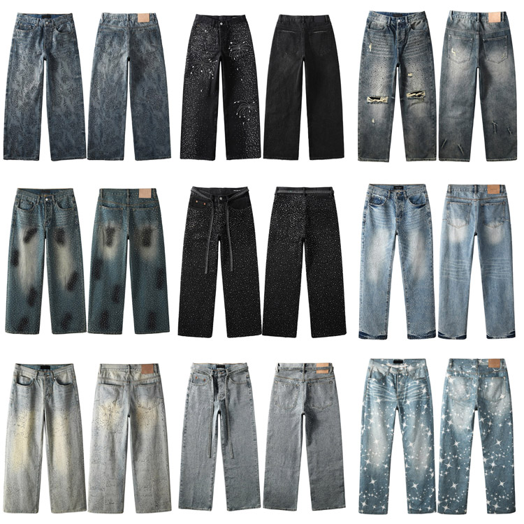 Purple Brand new diamond-studded slim-fit skinny jeans with wide legs-4247