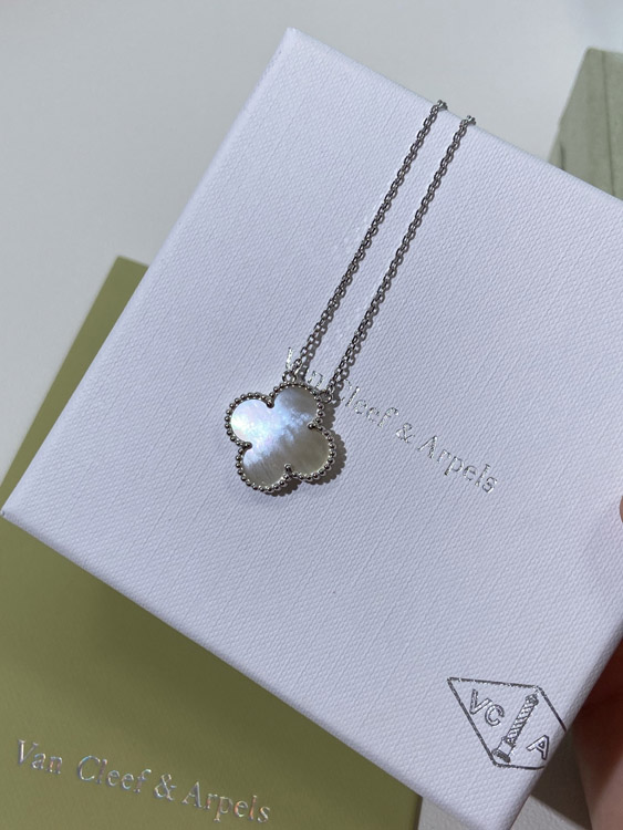 Van Cleef & Arpels four-leaf clover white wide necklace-3788